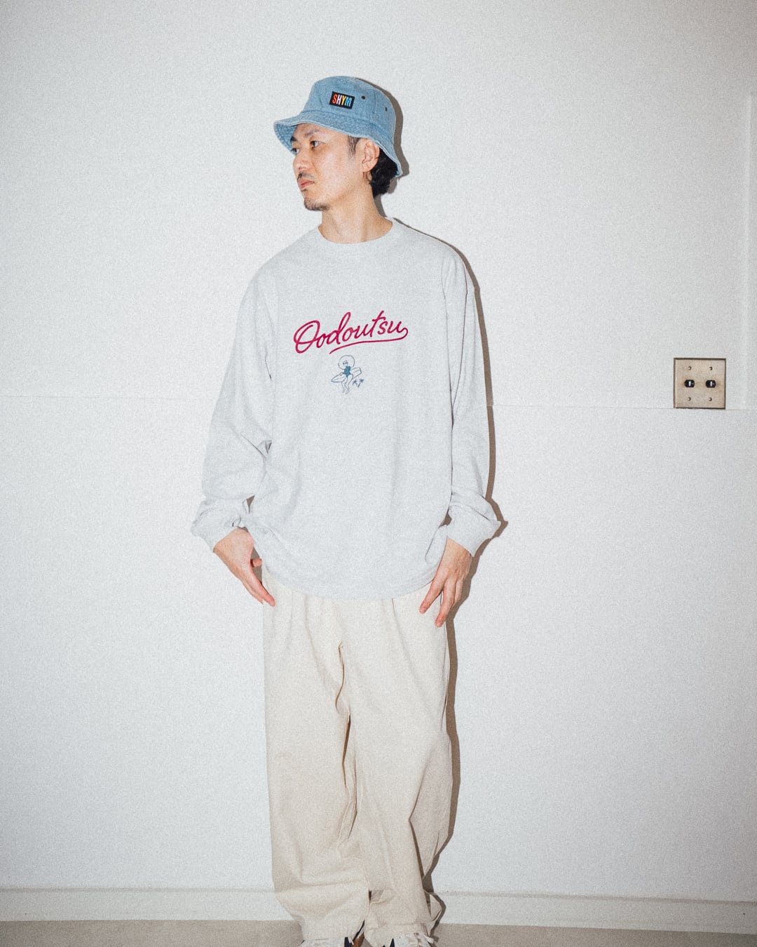 LOCAL VIBESシリーズで好評いただいている大堂津ロンTに新色が登場!アッシュボディーにバーガンディカラーのプリントが秋冬らしい一枚!