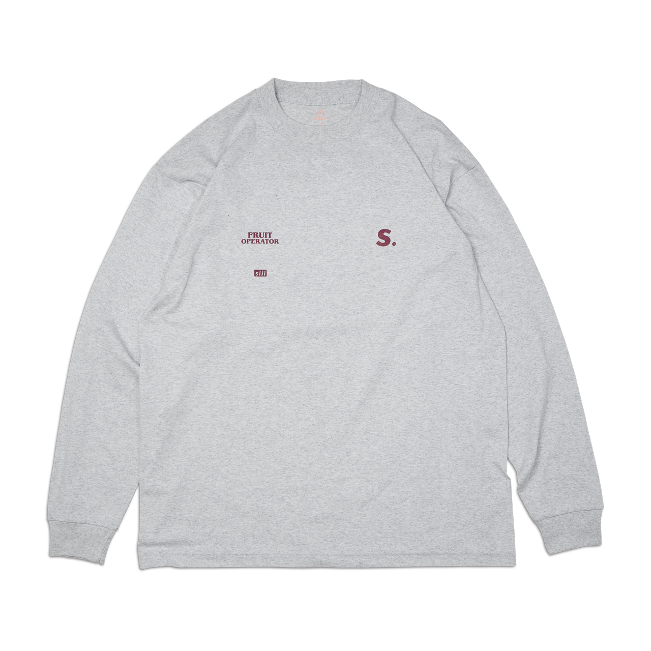 バーガンディーカラーのプリントで、フロントは、「 S.」と「FRUITS OPERATOR」。バックは「0」!
