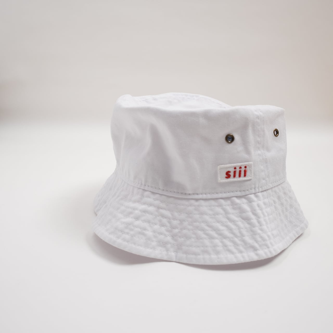 siiiのボックスロゴの刺繍パッチを施し、シンプルでいて合わせやすさ抜群!アウトドアからストリートシーンまで活躍するコットンバケットハット。