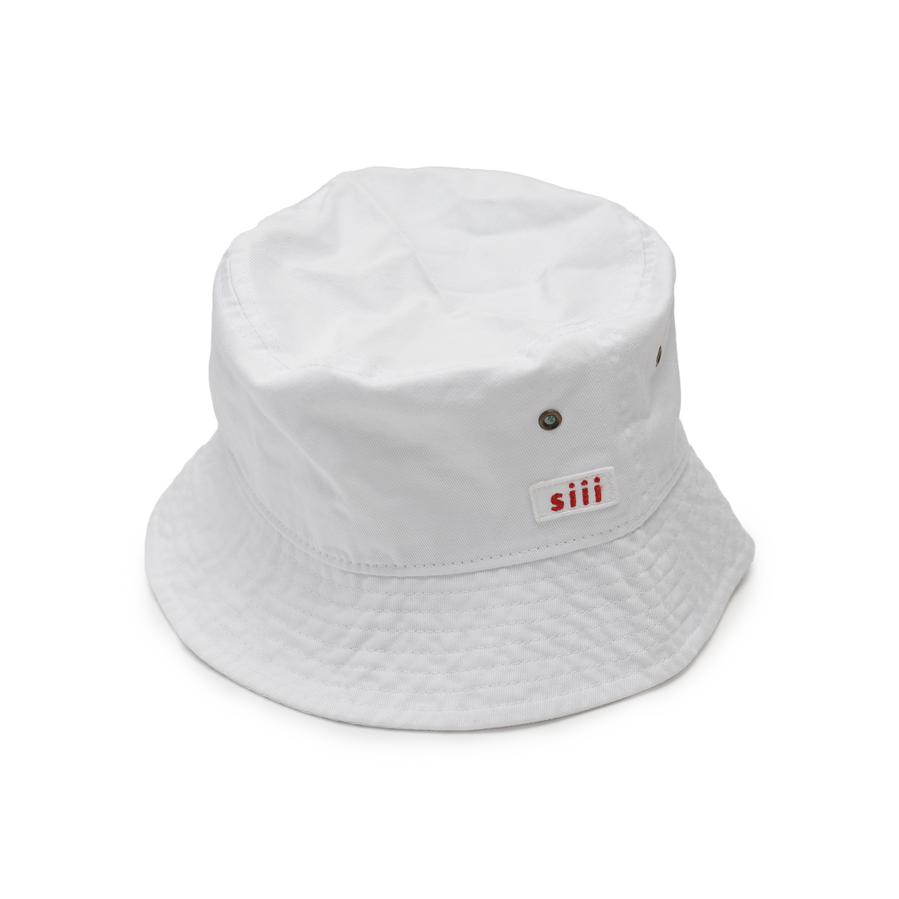 siiiのボックスロゴの刺繍パッチを施し、シンプルでいて合わせやすさ抜群!アウトドアからストリートシーンまで活躍するコットンバケットハット。