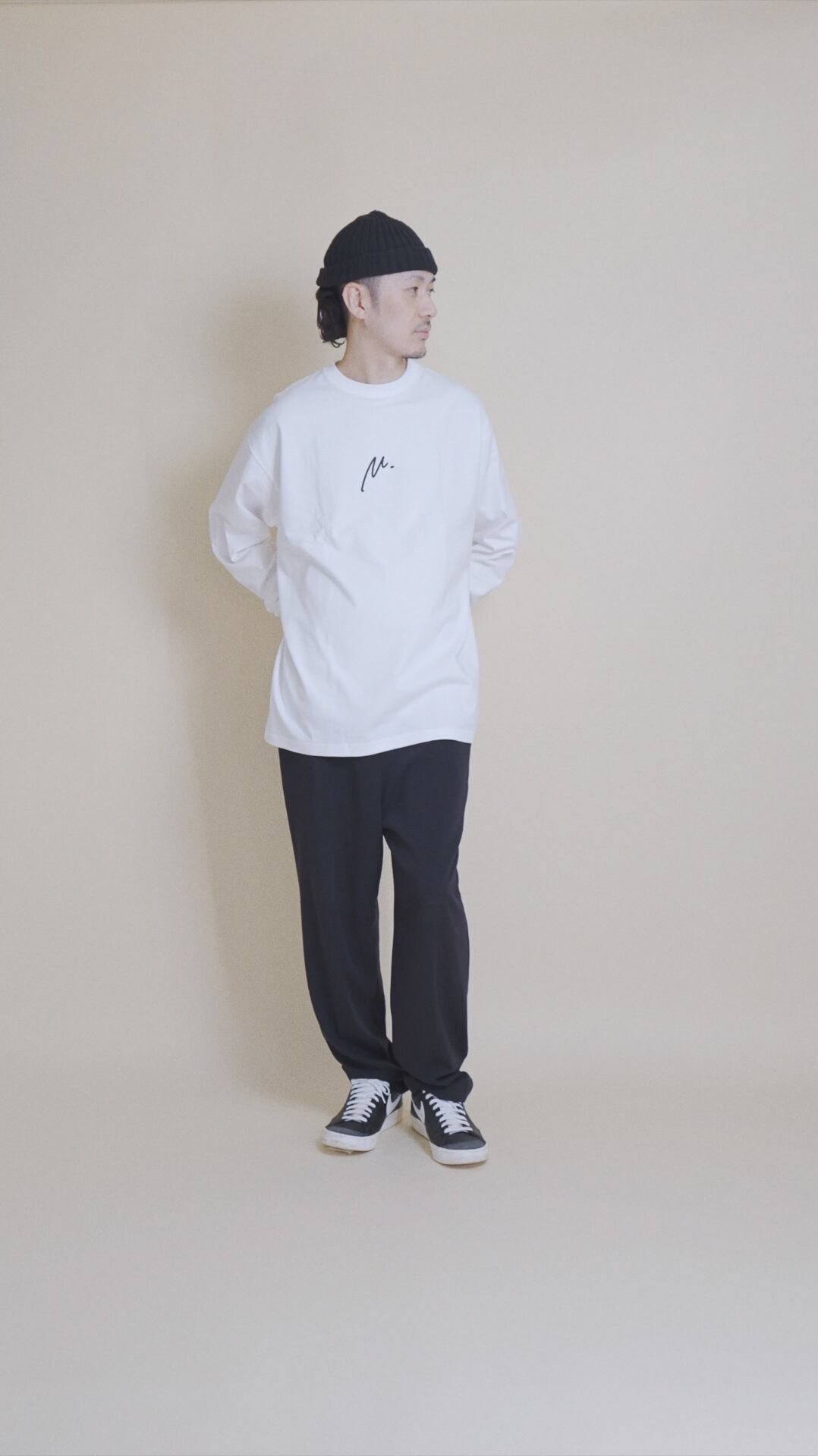 フロントイラストの半袖Tシャツと雰囲気を変え、ロンTはフロントにポイントになるイニシャル“M-”、お花とスニーカーのイラストはバックプリントにし、両面プリントのクールなデザイン。こちらもモノトーンコーデでも華やかにきまる一枚!
